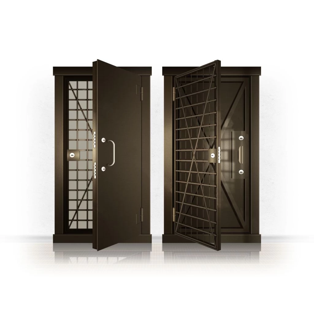 Металлические двери КХО и КХН представляют собой входные блоки, обладающие высоким уровнем взломостойкости и состоят из трех основных элементов: усиленного каркаса, сплошного металлического полотна и решетчатой двери. Дверной блок изготавливается из стального уголка 100*100 мм. Места крепления блока к стене цементируются и закрываются стальными наличниками шириной 40 мм. Крепеж заходит вглубь стены на 80 мм. В конструкции внешней створки монтируются ребра жесткости, для обшивки используется сталь толщиной не менее 3 мм. Внутренняя решетка изготавливается из прутка диаметром 16 мм. Размер ячеек решетки должен составлять не более 15 на 15 см. В точках пересечения прутья надежно приваривают друг к другу. В КХО и КХН необходимо поддерживать определенную температуру и влажность. Для этого внутреннее пространство глухой двери заполняется теплоизоляционным материалом, а по периметру двери приклеивается уплотнитель. Такие двери оборудуются замками с повышенным уровнем взломостойкости. Специализированные двери КХО и КХН в Джанкое могут быть оснащены сигнализацией, в конструкции могут быть проушины для навесного замка и элементами для опечатывания. Если идет речь о двери в комнату хранения оружия, в створке оборудуется окно для выдачи оружия и спец. средств, которое накрывается стальной дверцей.