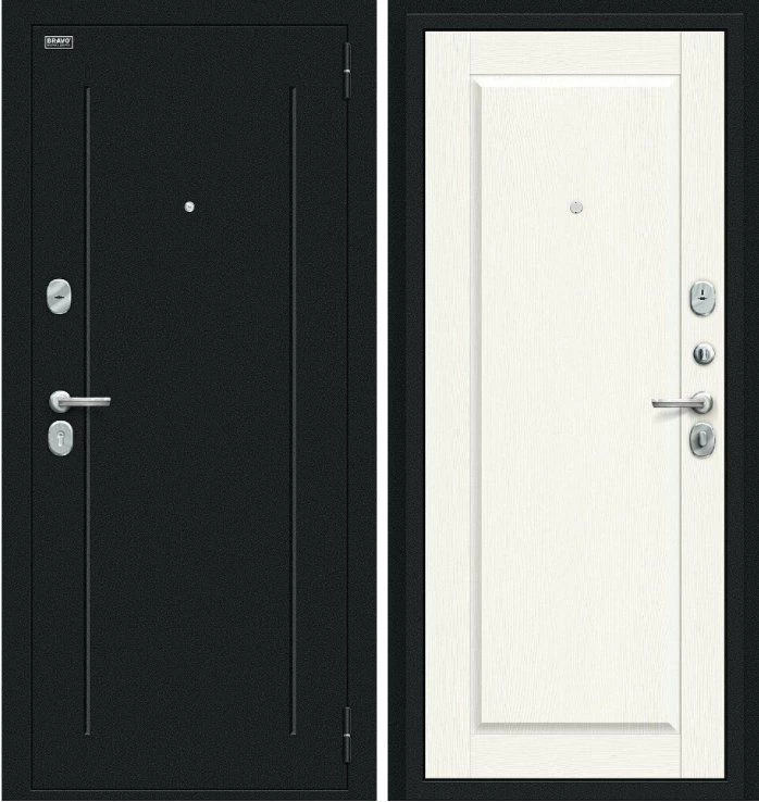 Надежная входная Дверь Браво Сьют Kale Букле черное White Wood премиум класса по цене 38 571 руб. Большая толщина стали защитит от проникновения в ваш дом, квартиру или коттедж. Используется очень качественная фурнитура: замки, цилиндры, ручки, защелки. Покрытие и отделка двери изготовлено под внимательным контролем производителя. Дверь имеет долгий срок службы и гарантию.